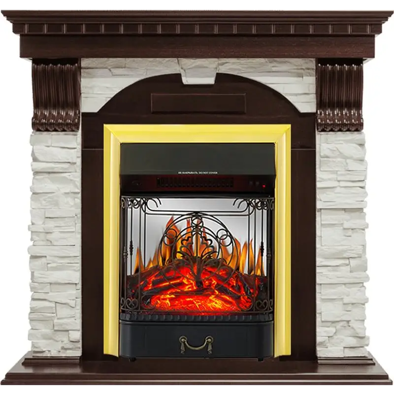 Каминокомплект Royal Flame Dublin угловой - Темный дуб / Сланец белый с очагом Majestic FX Brass